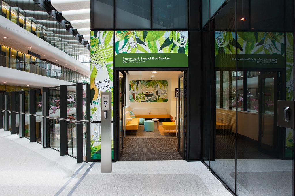 Để đơn giản hóa việc tìm đường, mỗi tầng của bệnh viện đều có chủ đề lấy cảm hứng từ một khu vực địa phương. Khu bệnh nhân trở nên tươi sáng nhờ các tác phẩm nghệ thuật, đồ họa và biển hiệu làm nổi bật các loài thực vật và động vật bản địa của Úc liên quan đến các chủ đề này.